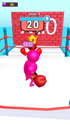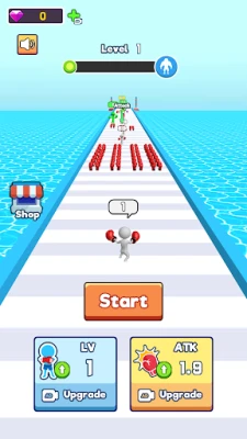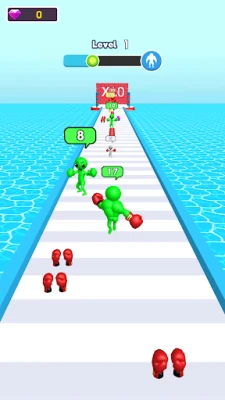 Test your strength and endurance in this 3D arcade game where you control stickman boxers in a vertical running challenge. Collect boxing gloves, battle weaker opponents, and take on the final boss at each level! If you encounter a stronger boxer, evade rather than fight to survive. But beware, a direct punch means game over! Claim gems to upgrade your starting level and attack power (ATK). Upgrade your abilities in the games' shop, or change your players' style with 6 unique boxing gloves.
