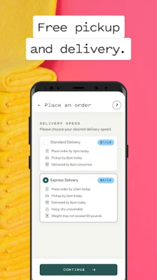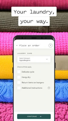 Also includes free pickup and delivery, custom options like hang-dry, and Poplin's Protection Plan, which includes insurance up to $200 with any minimum order, covering you in case of damage or loss.